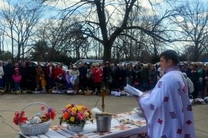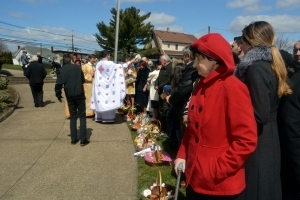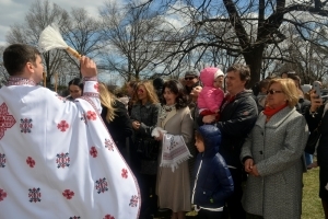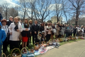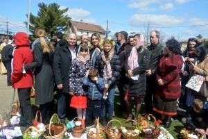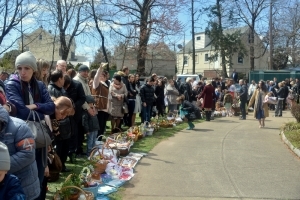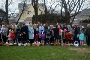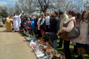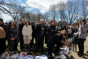 Освячення пасхальних кошиків з різними стравами відбулося напередодні свята у суботу ввечері, у той час, як в Україні вже у всіх храмах співали “Христос Воскрес”, а також освячення відбувалось на сам Великдень по завершенні святкового богослужіння.